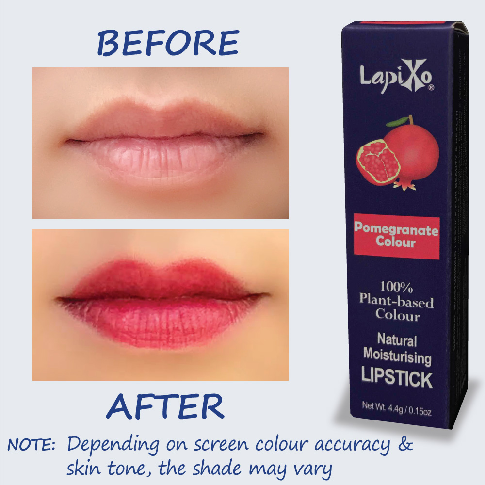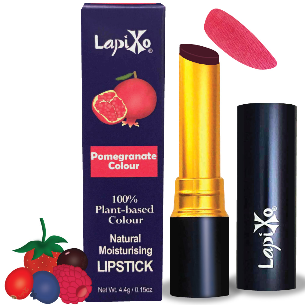 LAPIXO Natural Moisturising Lipstick (Pomegranate colour) provides a beautiful natural vibrant colour and light-weight feel. Formulated for beauty & health.